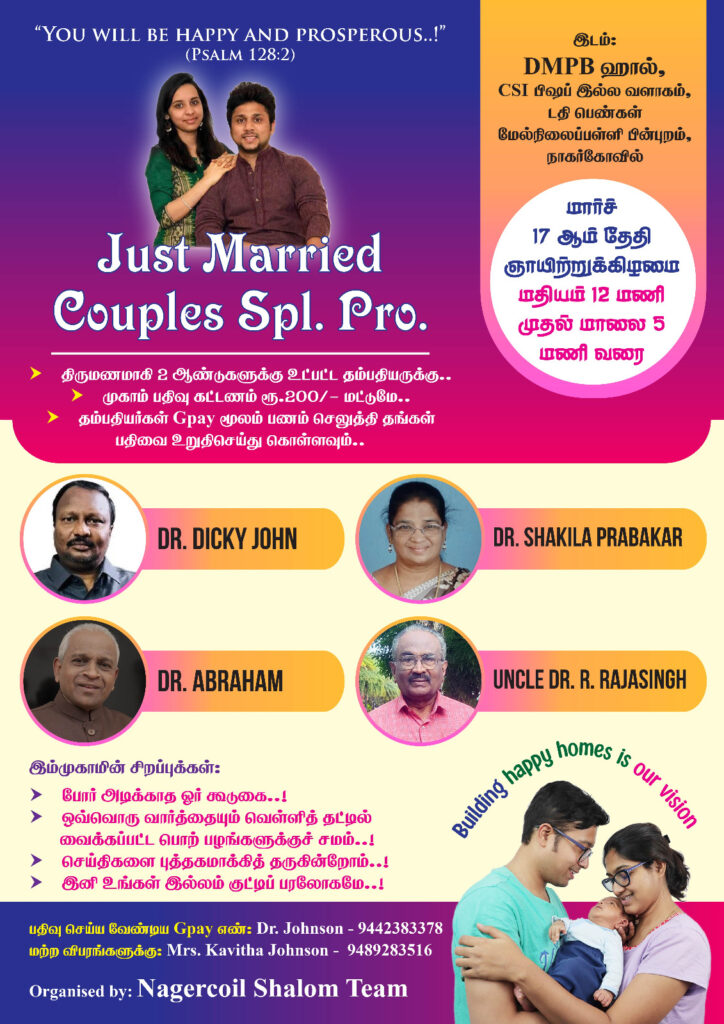 Venue: DMPB ஹால், CSI பிஷப் இல்ல வளாகம், டதி பெண்கள் மேல்நிலைப் பள்ளி பின்புறம், நாகர்கோவில்.