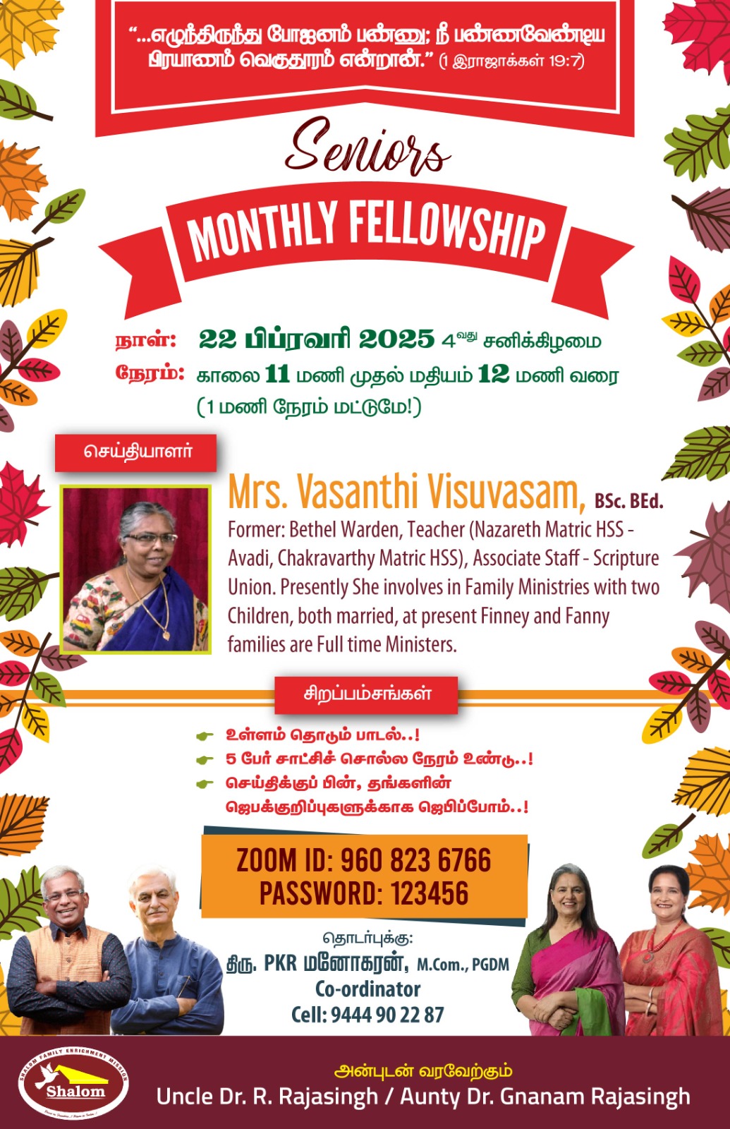 ๐ค Speaker: Mrs. Vasanthi Visuvasam, B.Sc., B.Ed.