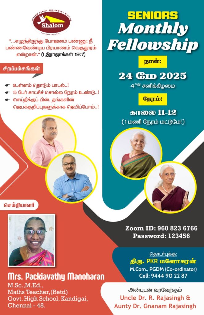 Uncle Dr. R. Rajasingh: 9382720809 & Aunty Dr. Gnanam Rajasingh: 9884354602
