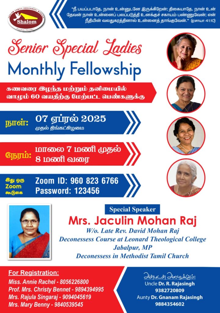 Speaker: Mrs. Jaculin Mohan Raj, W/o Late Rev. David Mohan Raj