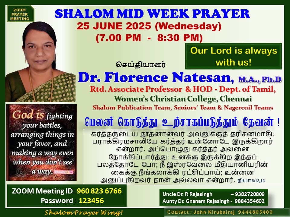 🎤 Speaker: Dr. Florence Natesan, M.A., Ph.D. (Shalom Publication Team, Seniors Team & Nagercoil Team)