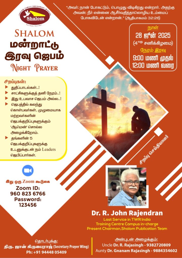 Speaker: Dr. R. John Rajendran, Last Service in TWR India, Training Centre Campus in-charge, Present Chairman Shalom Publication Team.